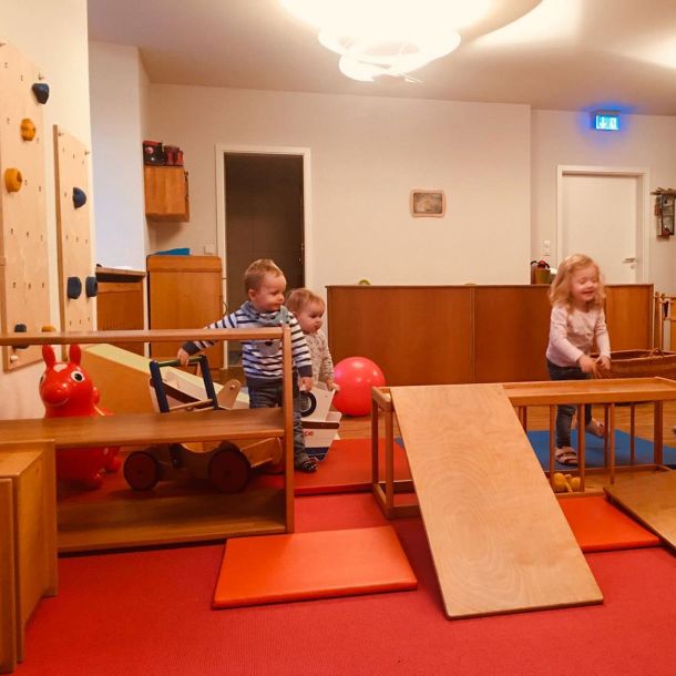 Unsere Kinder treffen auf eine vorbereitete Umgebung, die viel Raum und Herausforderung für Bewegung und Spiel zulässt, ausgestattet mit anregenden, vielfältigen und altersangepassten Spielmaterialien: