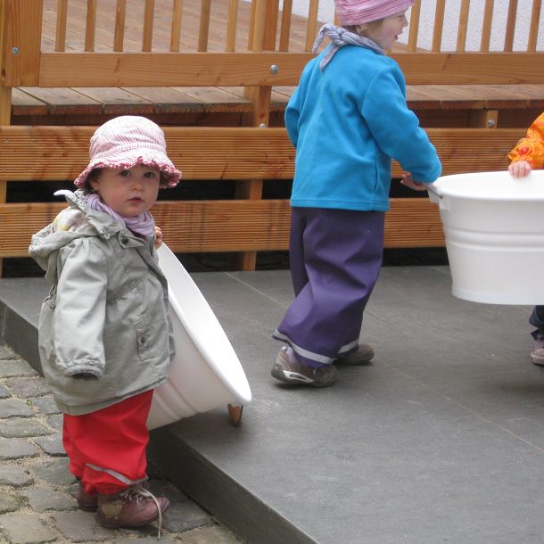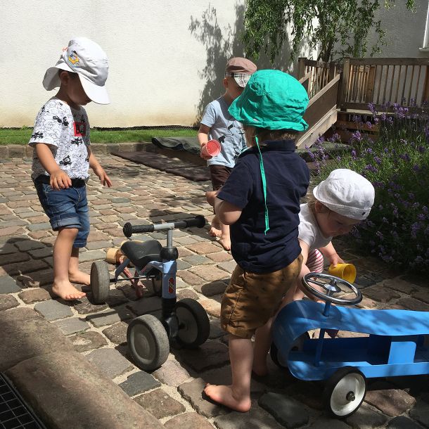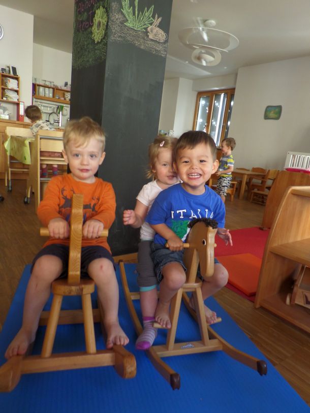 Gestartet sind wir mit gerade mal zwei Kindern - Sebastian und Leonardo - im September 2012. Bis Februar 2013 waren dann alle Plätze belegt und wir haben unsere ersten Jahresfeste mit den Kleinen erlebt: Plätzchen backen in der Weihnachtszeit, Einsäen von Kräutern und Sommerblumen, Osterkörbchen und Geburtstagskuchen backen und ein Sommerfest mit allen gemeinsam - Eltern, Kindern und Erziehern.