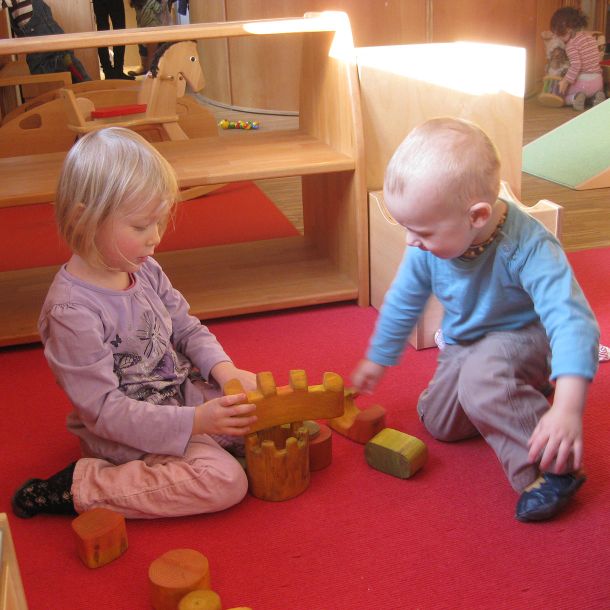 Unsere Kinder treffen auf eine vorbereitete Umgebung, die viel Raum und Herausforderung für Bewegung und Spiel zulässt, ausgestattet mit anregenden, vielfältigen und altersangepassten Spielmaterialien: