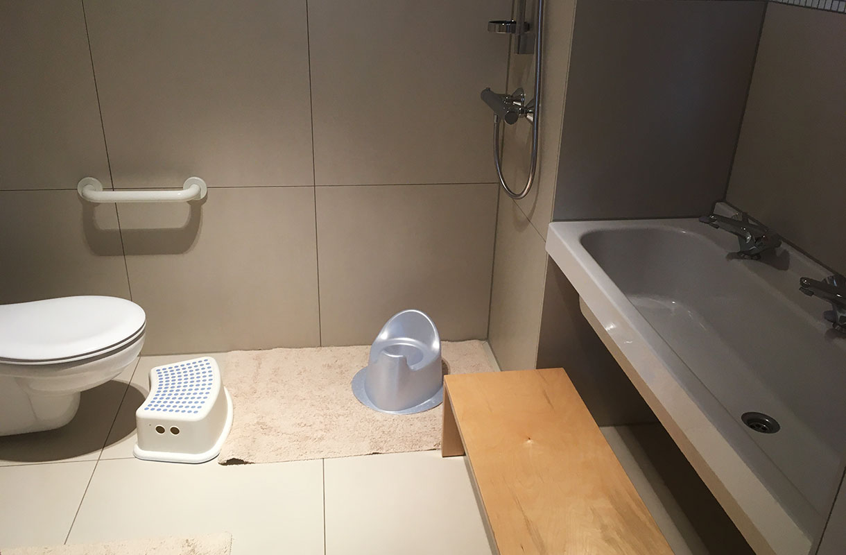 Im Waschraum lernen die Kinder Händewasche mit Seife, nach dem Essen Zähneputzen und selbständig auf die Toilette zu gehen.