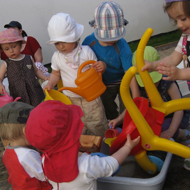 Die Zielrichtung der Kinderkrippe Krönchen e.V. ist es, eine qualitativ hochwertige Betreuung für Eltern zu schaffen, die im Berufsleben stehen und eine vollzeitliche liebevolle Betreuung in einer Kleinkindgruppe suchen. 10 Kinder im Alter von einem bis drei Jahren verbringen ihre Zeit in einem ihrer Entwicklung angemessenen geschützten Raum, der ihrem Explorationsbedürfnis in der Bewegung keine Grenzen durch Verbote setzt.